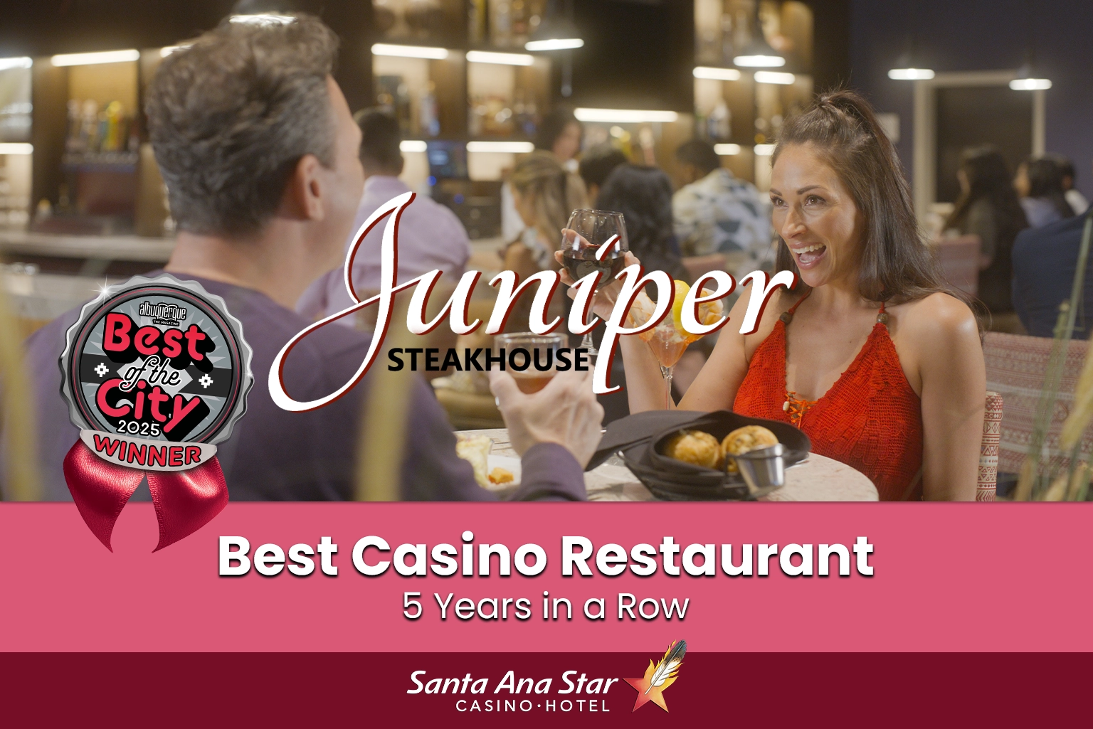 Specializing in affordable elegance, Juniper Steakhouse is truly an experience from start to finish. Relax in Juniper Steakhouse’s warm atmosphere while enjoying the finest steaks, fresh seafood, an extensive wine list and hand crafted cocktails.